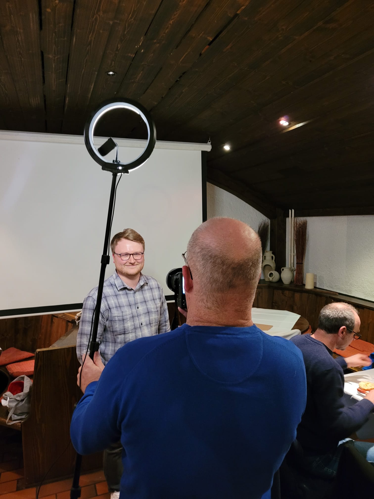 Und ganz zum Schluss: Während bereits das Essen serviert wurde, wandelte sich eine Ecke der Zollhausstube in ein Fotostudio – für die Wahlflyer werden nämlich Fotos des KandidatInnen gebraucht – der Abend bot eine tolle Gelegenheit, alle vor die Linse zu bekommen.